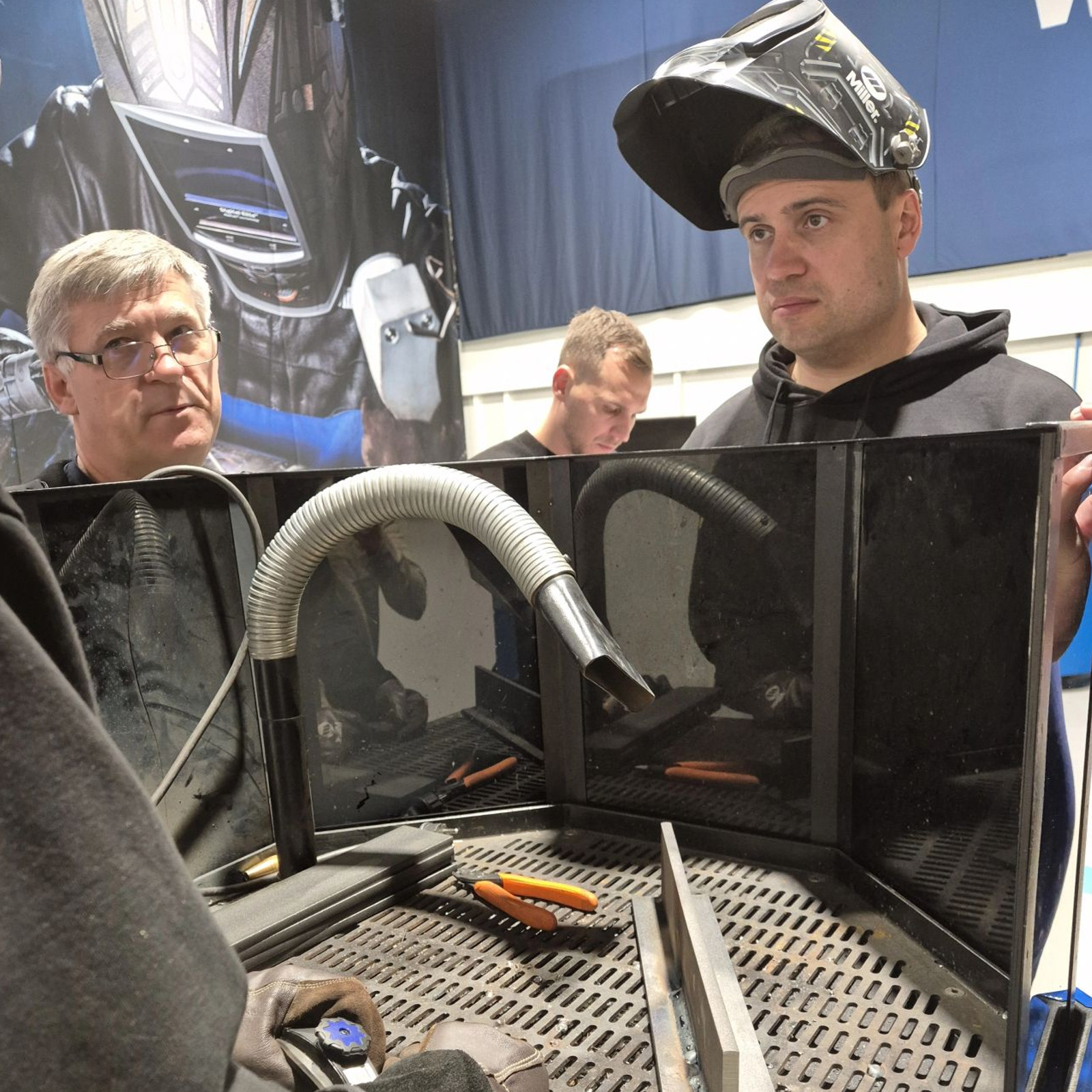 Didžiąją dalį vizito skyrėme „Miller“ suvirinimo aparatų technologijoms. „Miller“ – tai vienas pagrindinių ITW Welding prekės ženklų, siūlantis pažangius suvirinimo sprendimus įvairioms pramonės šakoms: nuo metalo konstrukcijų iki automobilių pramonės. Vizito metu susipažinome su tokiais modeliais kaip MigMatic 300iP, S400iP, Deltaweld 500, Dynasty ir kitais.
